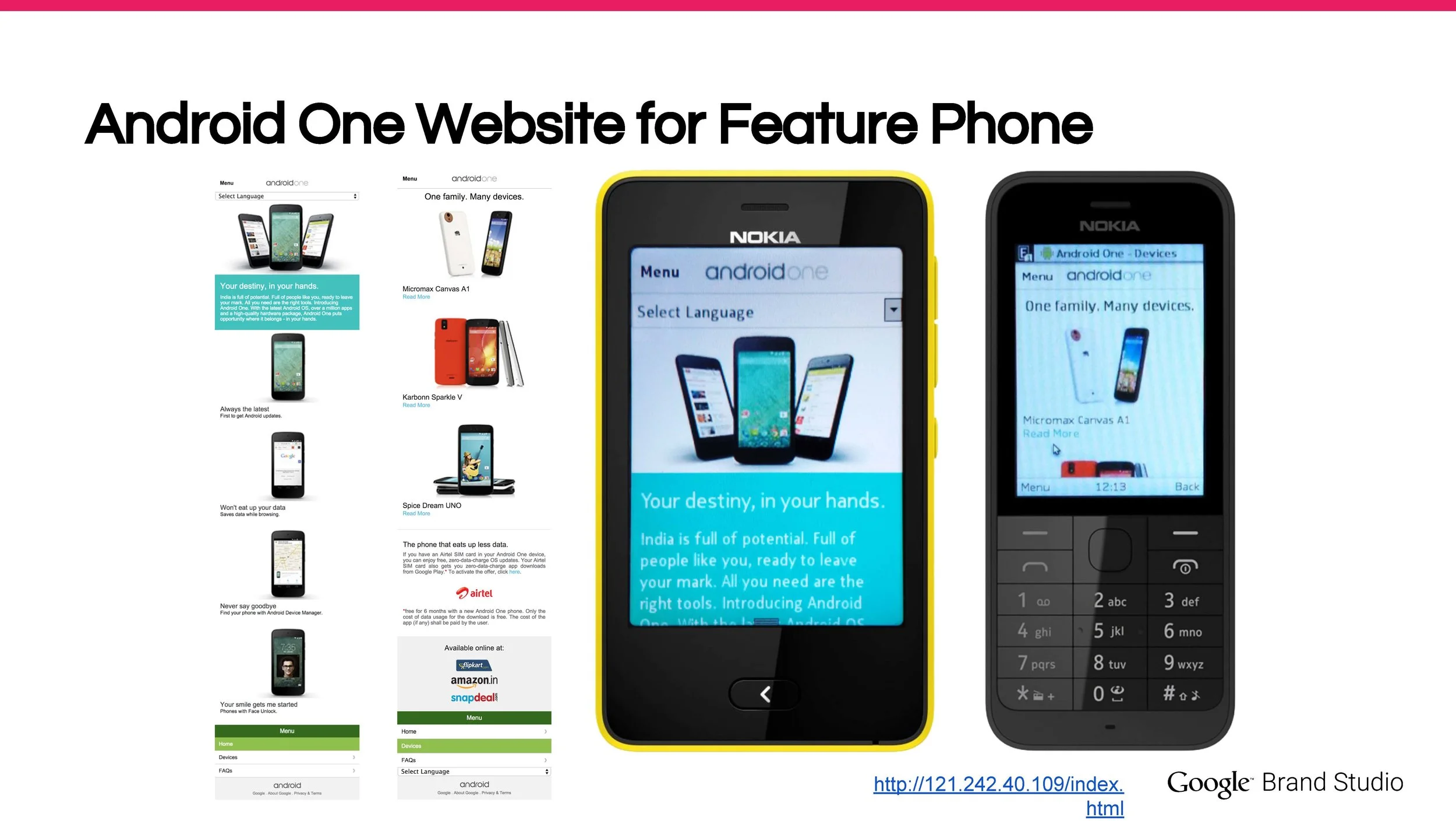This project was about how to create the Android One website for Feature phone users in India. I tried to apply both the Google and Android brand standards. So there were several restrictions we had to follow, different from what we normally do for smart phones, yet I wanted to maintain the sophistication of Google’s design. I incorporated Android design principles as much as possible in terms of layout, color usage and font sizes. Interestingly, design wasn’t the only challenge. Coordinating with India’s marketing team as well as addressing differences in design standards and communication with the local agency proved to be a good challenge too.